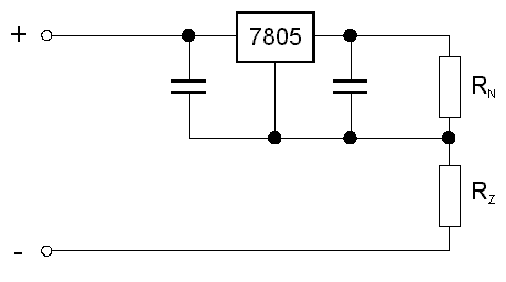 Příkladem zdroje napětí s elektronickou regulací je tzv. tříbodový stabilizátor napětí, obr. 1.12.