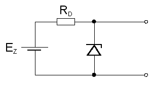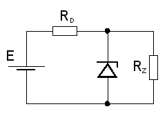 Napětí, při kterém dochází k Zenerovu nebo lavinovitému průrazu je charakteristické pro konstrukci diody (šířku přechodu) a pro danou diodu závisí jen na teplotě. Zapojíme-li tedy diodu podle obrázku 3.22,