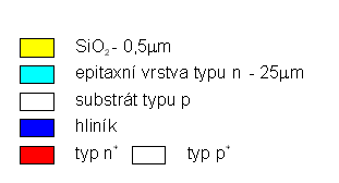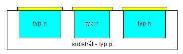 Popišme si nyní jednotlivé technologické kroky vedoucí k vytvoření struktury na čipu. První krok, tj. výrobu křemíkové destičky, jsme si již popsali. Jakým způsobem tedy můžeme na této destičce vytvořit tzv. monolitický integrovaný obvod? (Slovo ”monolitický” je odvozeno od řeckých slov monos - jeden a lithos - kámen, monolitický, vestavěný do jednoho kamene , do jednoho krystalu.) Dalším krokem je vytvoření tzv. epitaxní vrstvy. To je tenká monokrystalická vrstva křemíku (v našem případě typu N), vytvořená zahřátím substrátu na teplotu cca 1200 °C a exponováním destičky atmosféře obsahující atomy křemíku a současně atomy příměsi typu N, např. fosforu. Vytvořením epitaxní vrstvy jsme vlastně vytvořili první PN přechod, který, jak uvidíme dále, bude sloužit k izolaci jednotlivých součástek od sebe. Následuje oxidace této expitaxní vrstvy ohřátím destičky na cca 1000 °C a exponováním do kyslíkové atmosféry; vytvoří se tenká vrstva (asi 0,5 mm tlustá) oxidu křemičitého na povrchu epitaxní vrstvy. Dalším krokem je vytvoření tzv. izolačních příkopů. Při výrobě monolitických integrovaných obvodů nemůžeme obvykle totiž izolovat jednotlivé prvky obvodu vzduchovou mezerou, jak je to normální u obvodu sestaveného z diskrétních součástek. Proto se jako izolace používá oblastí (v našem případě typu P), které mezi jednotlivé součástky obvodu vloží dva obráceně pólované PN přechody v serii; jakoby dvě obráceně pólované diody v serii. Mezi součástkami, ať je na nich vzájemně napětí jakékoli polarity, poteče jen závěrný proud těchto diod, který můžeme pro většinu případů zcela zanedbat. Vytvořením izolačních příkopů vzniknou tedy ostrůvky izolované od sebe a do nich pak můžeme vytvářet jednotlivé polovodičové struktury. Je třeba si uvědomit, že i když stejnosměrný izolační odpor mezi ostrůvky je velmi vysoký (odpovídá odporu diody v závěrném směru, tj. je v řádu 109 W; je nutno si též uvědomit, že tento odpor je závislý na napětí a tedy že uvedená vysoká hodnota izolačního odporu platí jen pro do napětí, na která je čip konstruován), existuje nenulová parazitní kapacita mezi ostrůvky daná v podstatě kapacitou PN přechodu v závěrném směru (je to kapacita jednak ostrůvků vůči sobě, jednak kapacita ostrůvků vůči substrátu), která se mění se závěrným napětím, viz oddíl o kapacitních diodách v kapitole 2. Celková kapacita ostrůvků vůči sobě je řádu jednotek pikofaradů a je nutné s ní při návrhu monolitických integrovaných obvodů počítat. (Návrhy integrovaných obvodů se v současné době provádějí výhradně s pomocí počítače a rozsáhlých knihoven, kde jsou uloženy architektury jednotlivých struktur v různých technologiích; součástí takového programu je pak i simulační program, který provedený návrh ”vyzkouší” z hlediska požadovaných parametrů a upozorní na eventuální parazitní efekty. Jeden z nejznámějších programů k tomuto účelu vyrábí firma Silver Lisco.) Izolační příkopy se provádějí fotolitografickou technikou, která je stejná i pro vytváření polovodičových struktur a bude o ní řeč níže.