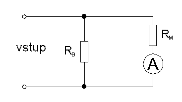 nahoře, proudový rozsah, pro který bočník počítáme,