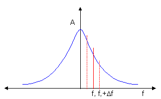 K tomu, abychom ze změny kmitočtu modulovaného signálu usoudili na modulační signál potřebujeme obvod, který bude ”citlivý” na změny kmitočtu. Takovým obvodem je právě rezonanční obvod LC s dostatečnou kvalitou. Jak jsme si vykládali při vysvětlování funkce Q-metru, je napětí na kapacitě oscilačního LC obvodu maximální v případě rezonance. Když nyní naladíme oscilační obvod tak, aby frekvence nemodulované nosné fN nebyla jeho rezonanční frekvencí, ale ležela ”na boku” jeho rezonanční křivky, např. na vysokofrekvenční straně, jak je ukázáno na obrázku 6.4., pak při snížení frekvence nosné z hodnoty fN na hodnotu fN-D f, vzroste amplituda napětí nakmitaného na rezonančním obvodu a při zvýšení kmitočtu z hodnoty fN na hodnotu fN+D f tato amplituda klesne. Převedli jsme tedy kmitočtovou modulaci na modulaci amplitudovou, kterou již můžeme detekovat způsobem běžným pro detekci amplitudově modulovaného signálu, např. diodovým detektorem.
