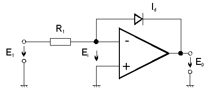 U logaritmických zesilovačů užívajících křemíkových diod může hodnota Ido dosáhnout hodnoty menší než 10-9 A, zatímco u zapojení s tranzistorem v diodovém zapojení (obr. 5.7b), může proud Ic být menší než 10-11 A a kolektorový proud je úměrný logaritmické funkci přes devět dekád.