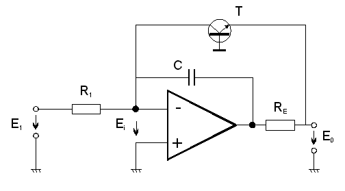 Jestliže například chceme realizovat logaritmující nebo exponenciální zesilovače, můžeme použít jako nelineárního členu polovodičové diody nebo tranzistoru v tak zvaném diodovém zapojení. Odpor RE na obr. 5.7b slouží k nastavení proudového zesílení tranzistoru T a kapacita C jako malá integrační kapacita k frekvenční stabilizaci obvodu. Proud polovodičovou diodou má exponenciální závislost