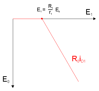 Na zesilující charakteristice zesilovače se pak pro vstupní napětí E1, které je určeno vztahem (5.9) vytváří zlom (viz obr. 5.10).