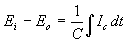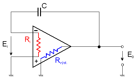 Výstupní napětí integračního obvodu je úměrné časovému integrálu vstupního napětí tj.: