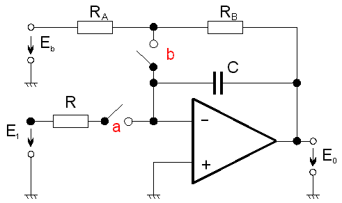 2. Režim integrace (sepnutý kontakt a , rozepnutý kontakt b ).