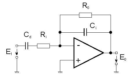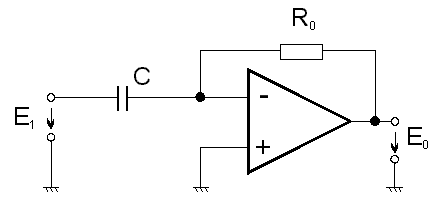 Prakticky se však uvedeného zapojení nepoužívá, neboť derivátor má obrácenou frekvenční charakteristiku než integrátor a při derivování se zesiluje napětí tím více, čím má vyšší frekvenci.