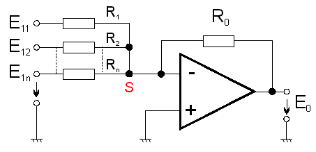 Je-li pro všechna n Rn=Ro, dostaneme na výstupu prostý součet napětí vstupních