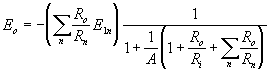 což je výraz ekvivalentní (5.5). Pro velké zesílení zesilovače A je zlomek roven přibližně jedné a výstupní napětí je úměrno součtu napětí ostatních, vynásobených příslušnými koeficienty: