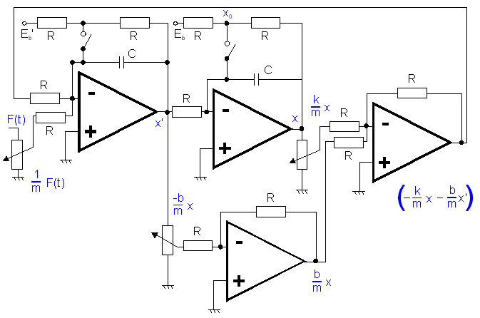 Počítací síť řešící rovnici (5.15) je uvedena na obr. 5.35. Na obr. 5.35 jsou rovněž uvedeny obvody pro nastavení počátečních podmínek.